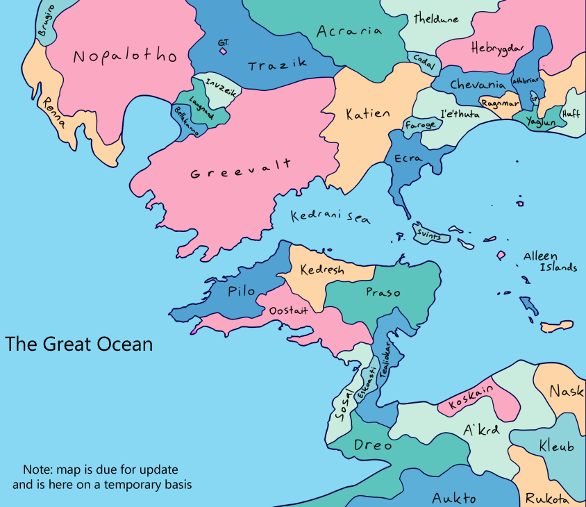 Greevalt was founded in the 300s, following a 5 year war with its predecesor: Trazlan. Trazlan had been exploiting their manufacturers, farmers and labourers. Those who had become victims of this fought back. Solnja Kand, alongside others, helped free their communities from the tyrannical Aristocrats. After the war, Trazlan had believed that the "rebels" wanted to rejoin, this time with respect from the crown. This was when Solnja revealed her true desire: To create her own country instead. Greevalt has existed since. Trazlan, now Trazik, remains bitter towards Greevalt.